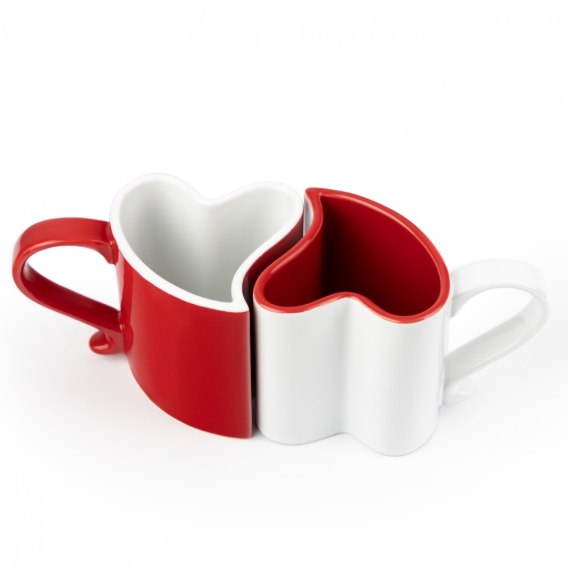 Dwa idealnie pasujące do siebie kubeczki w kształcie serca.