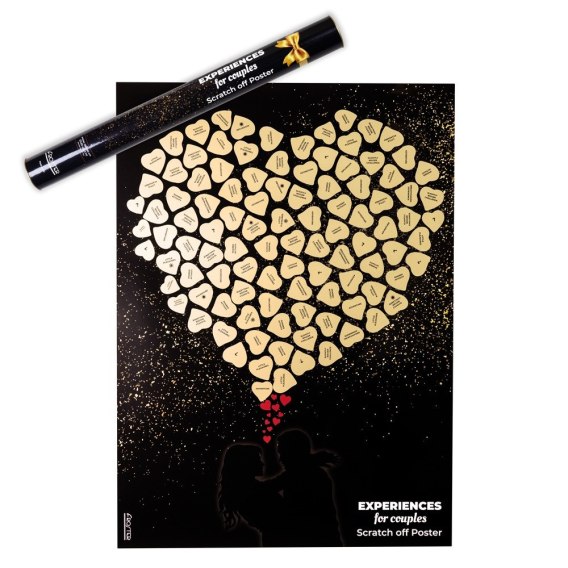 Zdrapka Przeżyć dla Pary to coś więcej niż przedmiot - to plakat do zdrapywania, który zawiera ponad 100 propozycji przeżyć, dzięki którym wspólne chwile staną się niezapomniane, a w związku nie będzie miejsca na nudę. Wystarczy wybrać, a następnie zdrapać pole, aby zacząć wspólną przygodę i podkręcić atmosferę odrobiną niepewności.
