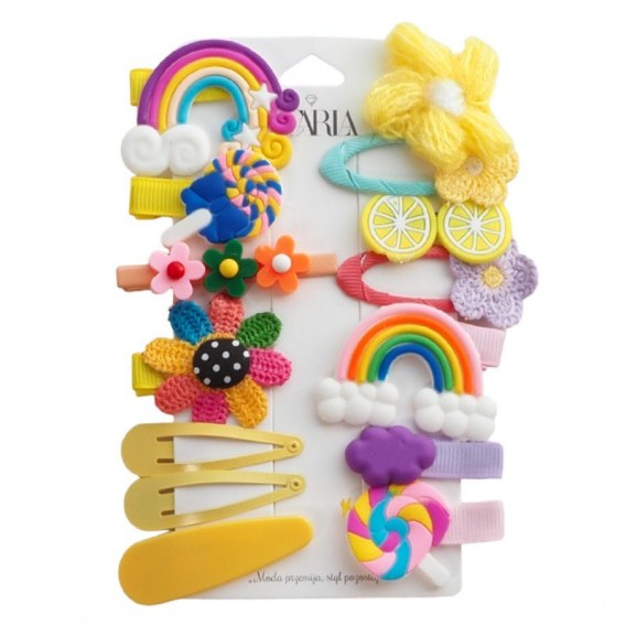 Zestaw 14w1 spinek wsuwek do włosów puchate RAINBOW SP290