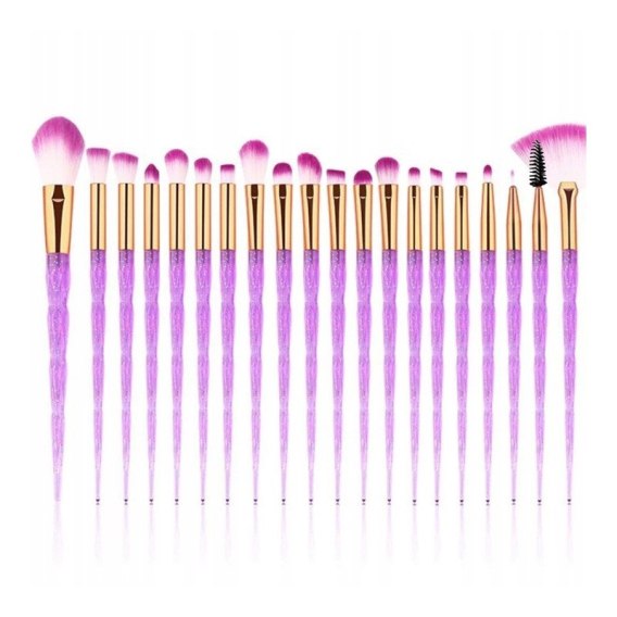 Aby uzyskać w łatwy sposób wspaniały i efektowny makijaż proponujemy Ci zestaw 20 pędzli do makeup'u W zestawie 20 precyzyjnych pędzelków do makijażu oczu, szczoteczka do brwi oraz 2 większe pędzle do twarzy. Włosie pędzli osadzone jest przy pomocy skuwki w kolorze miedzianym na transparentnym trzonku z zatopionym wewnątrz kolorowym brokatem.