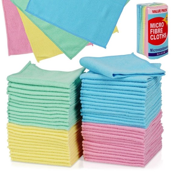 Zestaw pięćdziesięciu ścierek kuchennych wykonanych z mikrofibry. Ścierki są przydatne w trakcie sprzątania, niezwykle chłonne oraz łatwe w użyciu. Wykonane z wytrzymałych materiałów. Ścierki można używać na mokro i na sucho. Doskonale zbierają kurz i brud. Ścierki są uniwersalne, nadają się do czyszczenia i polerowania różnych powierzchni np. okien, mebli czy łazienki. Przydatne w każdym domu, biurze czy samochodzie.