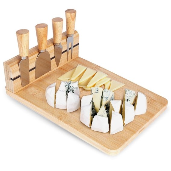 Deska bambusowa do krojenia podawania serwowania serów + 4 noże do sera