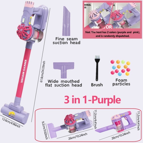[Ciepła wskazówka] Zestaw zabawek z odkurzaczem jest przeznaczony dla dzieci i może symulować jedynie funkcję pochłaniania drobnych cząstek pianki EVA lub skrawków papieru.Nie ma rzeczywistego efektu odkurzacza.