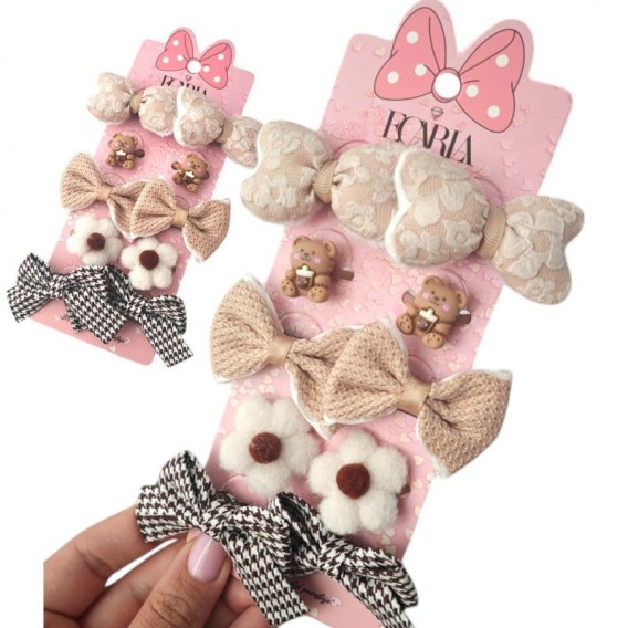 Zestaw frotek gumek do włosów 10w1 na plakietce, KOKARDKI, MIŚ GUM171