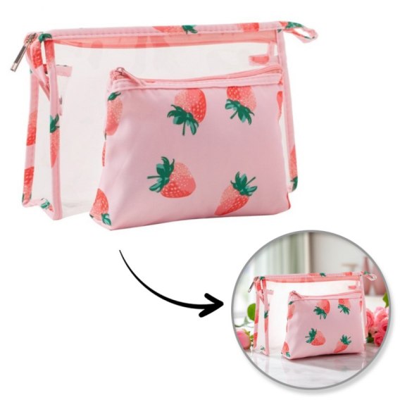 Zestaw kosmetyczek 2w1, saszetki, transparentna TRUSKAWKI KS152